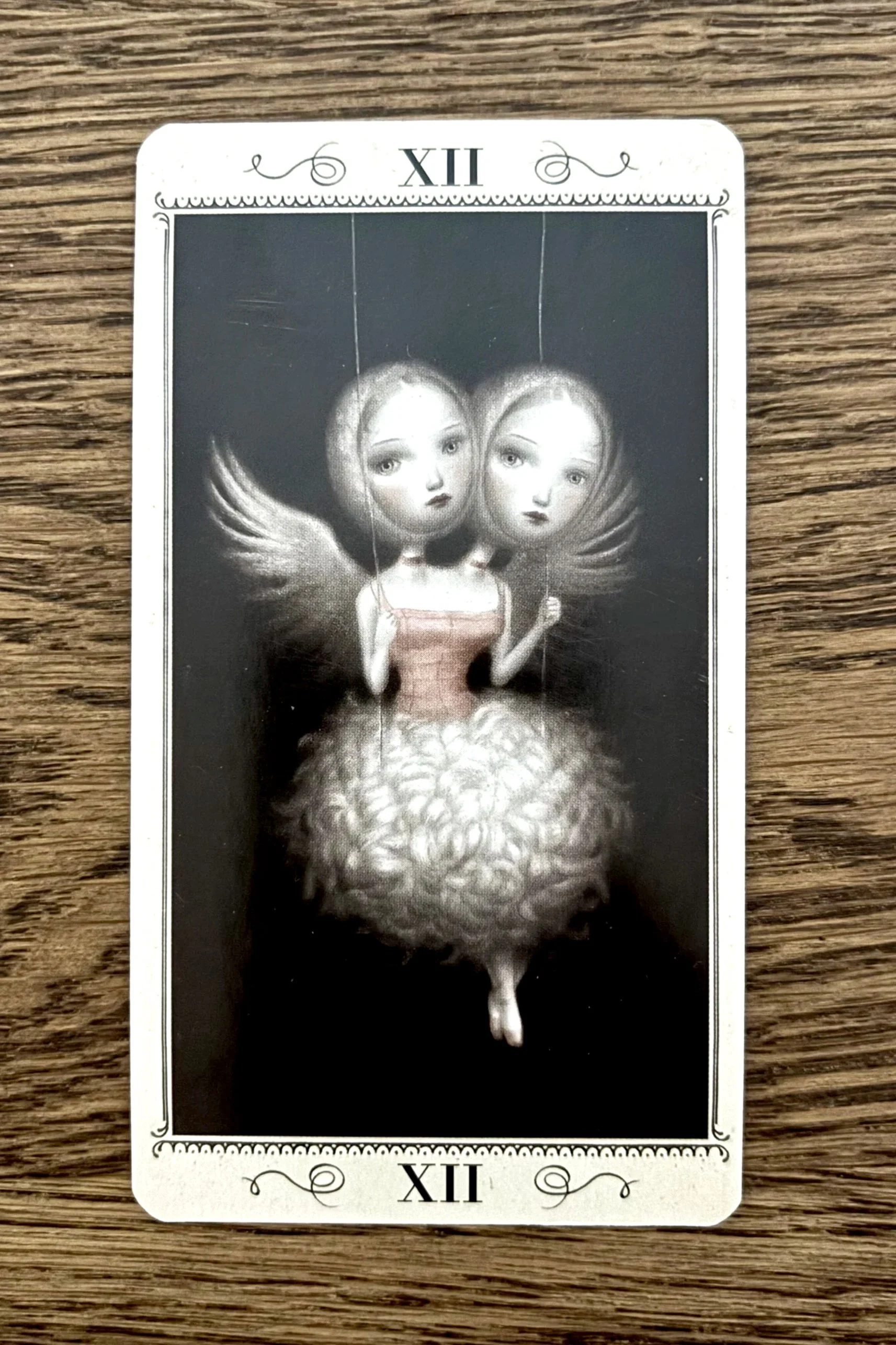 So überrascht es mich auch recht wenig, dass sich eine weitere neptunische Energie mit dem Gehängten zeigt (Neptun = Herrscher über Fische). Nur dass sich der Gehängte hier kurioserweise als siamesischer Zwilling präsentiert. Die KI erklärt die symbolische Bedeutung des siamesischen Zwillings als einen unvermeidlichen Pfad auf dem das Schicksal des Einen mit dem Schicksal des Anderen zusammenhängt. Das ist eine andere Perspektive (Merkur-Jupiter) auf den Fische-Archetypen. Alles ist mit allem in alle Ewigkeit untrennbar miteinander verbunden.