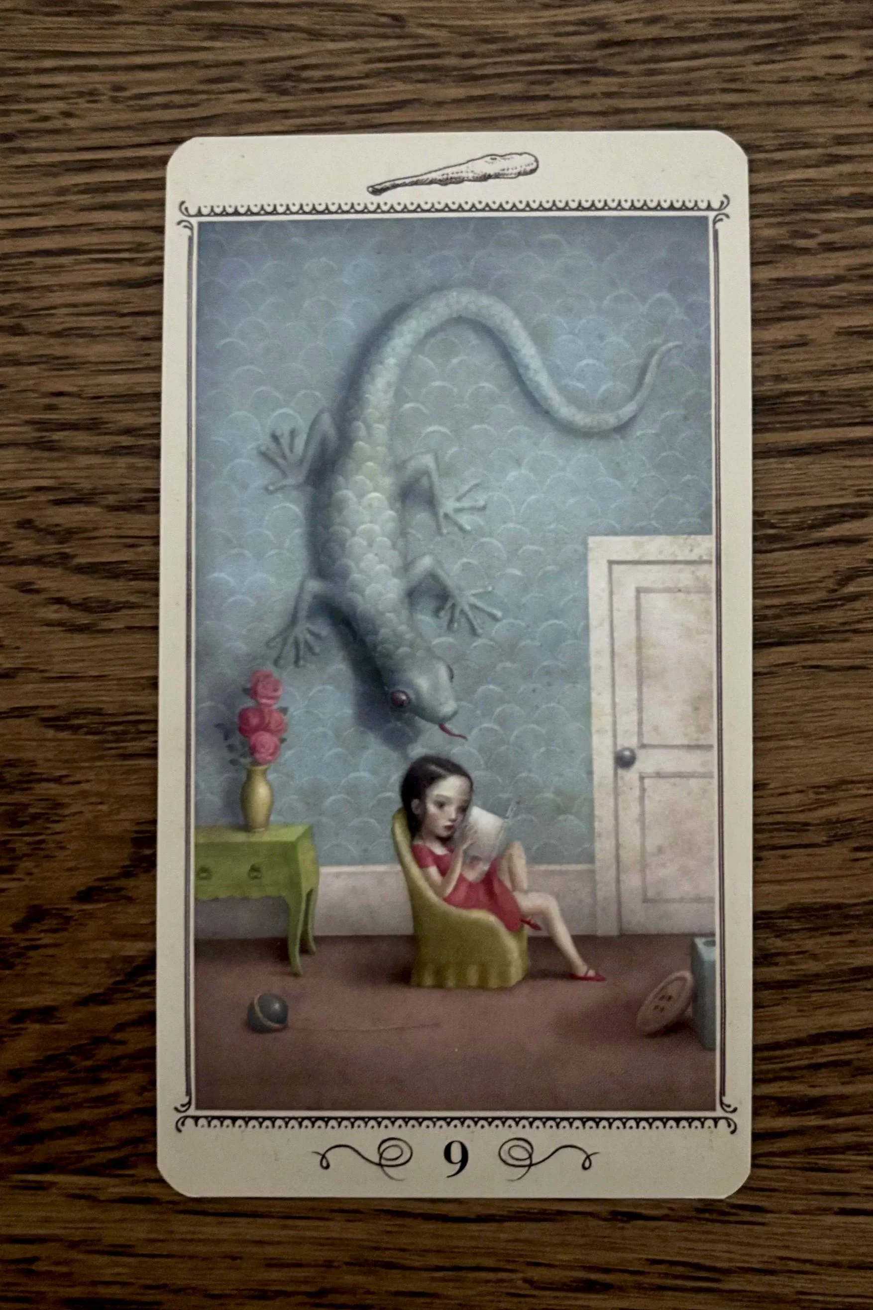 Vor diesem Hintergrund sah ich diese Interpretation der 9 Stäbe auch als einen Verweis auf das Buch “Die innere Burg” von Teresa von Avila. Auf dem Bild sieht man ein Reptil-ähnliches Wesen hinter der Person lauern. Es ist unsichtbar, aber dennoch präsent. So beschreibt die Mystikerin jegliche Art von Ablenkung und Sünde, die unseren Geist (Merkur) vergiftet (Fische) und die Reise ins eigene Innere (Merkur-Jupiter) verunmöglicht. Ein spiritueller Detox würde uns gut tun. Das bedeutet Stille, Rückzug und Meditation.